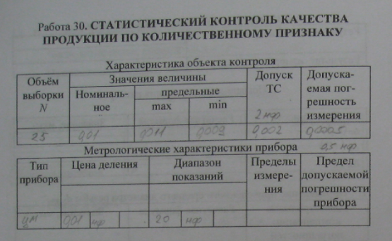 Лабораторная работа 30: Статистический контроль качества продукции по количественному признаку