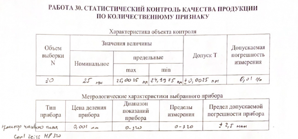 Лабораторная работа 30: Статистический контроль качества продукции по количественному признаку