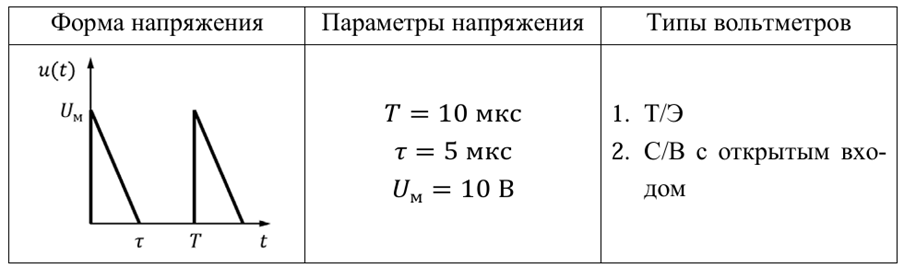 б) найти показания вольтметров двух типов при подаче на них напряжения заданной формы: