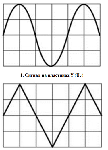 Задача: Сигнал на пластинах Y (UY ) и сигнал на пластинах X (UX ) ЭЛТ имеют форму, показанную на рис. 1