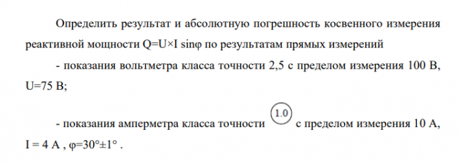 Задача: Определить результат и абсолютную погрешность косвенного измерения реактивной мощности