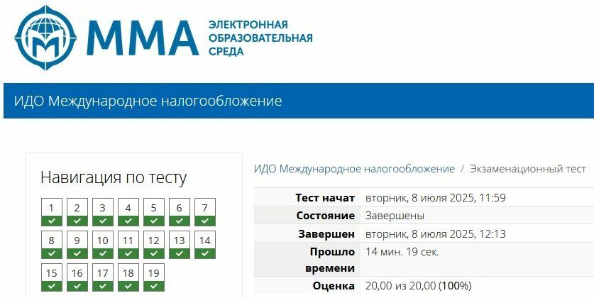 Сборник ответов к экзаменационному тесту Международное налогообложение ММА.