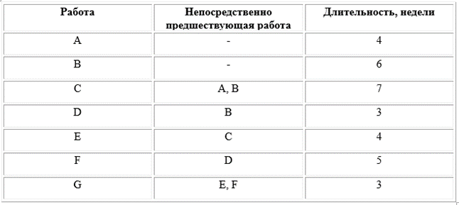 Компания разрабатывает строительный проект. Исходные данные по основным операциям проекта представлены в таблице. Рассмотрите ее и выполните несколько заданий, указанных ниже. Постройте сетевую модель проекта, определите критические пути и проанализируйте, как влияет на ход выполнения проекта задержка работы D на 4 недели.