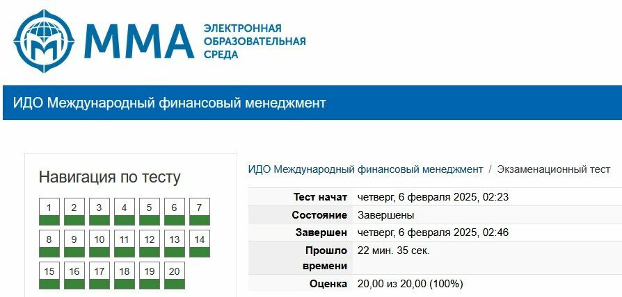 Сборник ответов к экзаменационному тесту Международный финансовый менеджмент ММА.