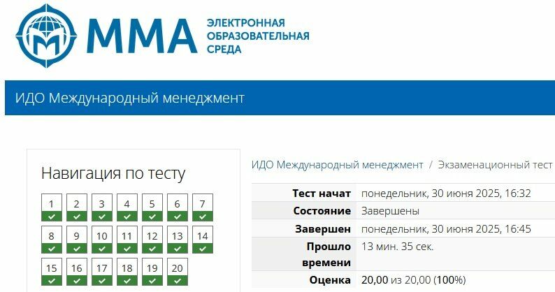 Сборник ответов к экзаменационному тесту Международный менеджмент ММА.