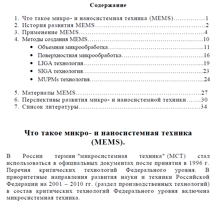 Реферат: История развития, современное состояние и перспективы микро- и наносистемной техники
