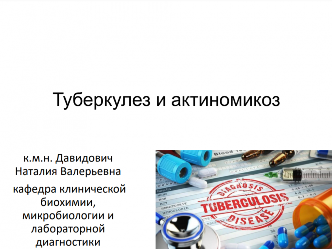 Для студентов СГМУ по предмету МикробиологияЛекция. Туберкулез и актиномикоз. Давидович Н.В.Лекция. Туберкулез и актиномикоз. Давидович Н.В.