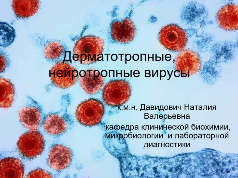 Для студентов СГМУ по предмету МикробиологияЛекция №4. Дерматотропные, нейротропные вирусы. Лабораторная диагностика. - Н.В. Давидович 2021Лекция №4. Дерматотропные, нейротропные вирусы. Лабораторная диагностика. - Н.В. Давидович 2021