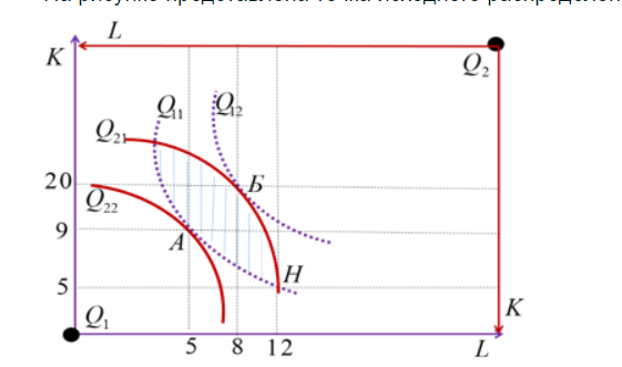 Любая точка в пределах коробки Эджуорта при изучении общего равновесия в производстве....