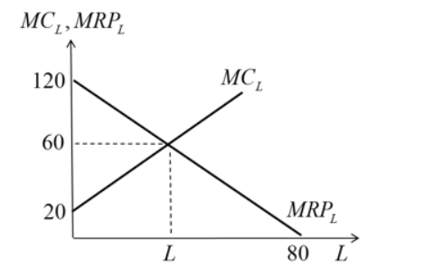 Функция спроса на продукцию монополиста имеет вид Pd=88−0,2Q��=88−0,2�. Технология производства продукции описывается уравнением Q=5L�=5�. Если цена труда равна 80 ден. ед., то сколько работников монополист привлечет к труду?