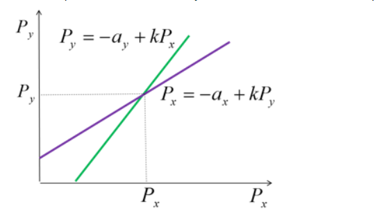 Общий рынок состоит из двух взаимозаменяемых товаров. Равновесие на каждом из рынков описано векторами цен Pxи Py.