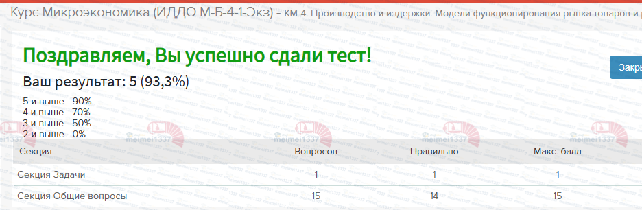 Для студентов ИДДО НИУ «МЭИ» по предмету МикроэкономикаКурс Микроэкономика - КМ-4. Производство и издержки. Модели функционирования рынка товаров и ресурсов. ТестированиеКурс Микроэкономика - КМ-4. Производство и издержки. Модели функционирования рынка товаров и ресурсов. Тестирование