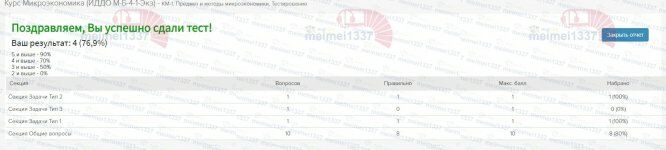 Курс Микроэкономика - КМ-1. Предмет и методы микроэкономики. Тестирование - 76.9%