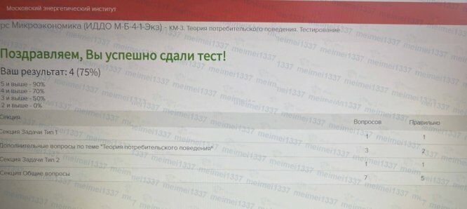 Курс Микроэкономика - КМ-3. Теория потребительского поведения. Тестирование - 75%