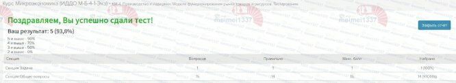 Курс Микроэкономика - КМ-4. Производство и издержки. Модели функционирования рынка товаров и ресурсов. Тестирование - 93,8%
