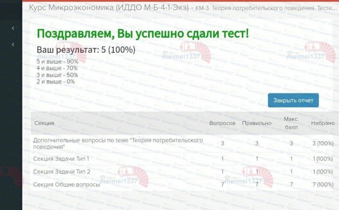💯Ответы к КМ-3: Теория потребительского поведения (Курс Микроэкономика)🔥
