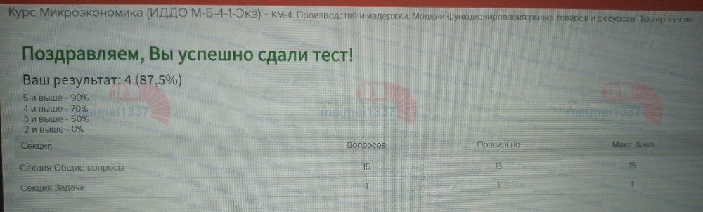 Ответы к заданиям КМ-4: КМ-4. Производство и издержки. Модели функционирования рынка товаров и ресурсов. Тестирование - 87,5%