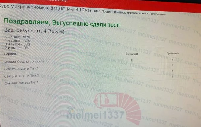 Для студентов ИДДО НИУ «МЭИ» по предмету МикроэкономикаКурс Микроэкономика - КМ-1. Предмет и методы микроэкономики. ТестированиеКурс Микроэкономика - КМ-1. Предмет и методы микроэкономики. Тестирование