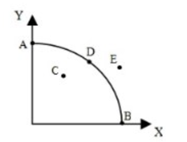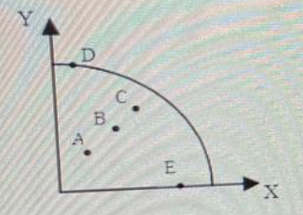 Комбинация производства двух товаров, при которой увеличение объема выпуска одного товара возможно без сокращение объема выпуска другого, представлена точкам: