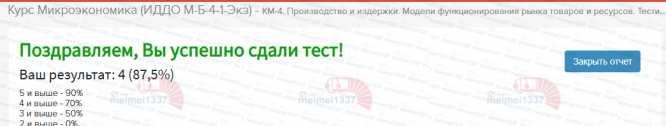 Курс Микроэкономика - КМ-4. Производство и издержки. Модели функционирования рынка товаров и ресурсов. Тестирование - 87.5%