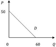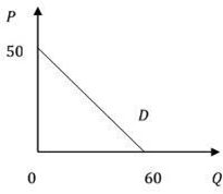 Для изображенной на графике функции спроса определите значение излишка потребителя, если известно, что рыночная цена установилась на уровне 60.