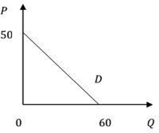 Для изображенной на графике функции спроса определите значение излишка потре- бителя, если известно, что рыночная цена установилась на уровне 30.
