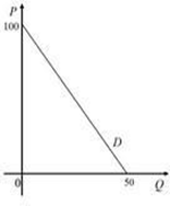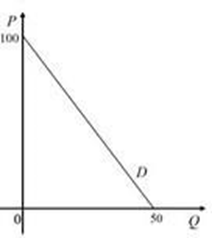Для изображенной на графике функции спроса определите значение излишка потребителя, если известно, что рыночная цена установилась на уровне 25.