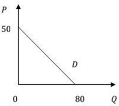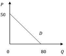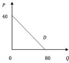 Для изображенной на графике функции спроса определите значение излишка потребителя, если известно, что рыночная цена установилась на уровне 40.