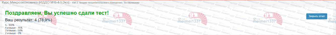 Для студентов ИДДО НИУ «МЭИ» по предмету МикроэкономикаМикроэкономика - КМ-3. Теория потребительского поведения. Тестирование - 78,9%Микроэкономика - КМ-3. Теория потребительского поведения. Тестирование - 78,9%
