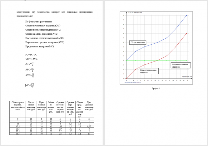 Постройте кривую общих валовых издержек производства стирального порошка предприятием «Химия» в зависимости от годового объема производства, отложив на горизонтальной оси объем, а на вертикальной - издержки. На базе имеющихся данных на этом же графике (график 1) постройте кривые общих постоянных и общих переменных издержек производства (всего на графике 1 должны быть три кривые).
