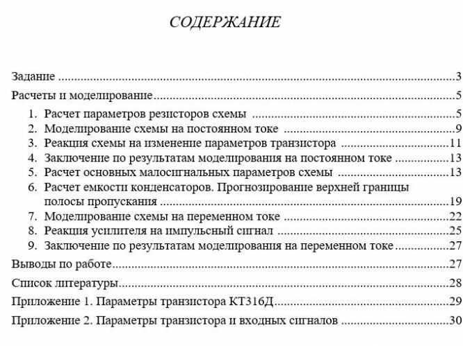 - Провести сравнение аналитических прогнозов поведения усилителя на переменном токе с результатами моделирования и сделать необходимые выводы.