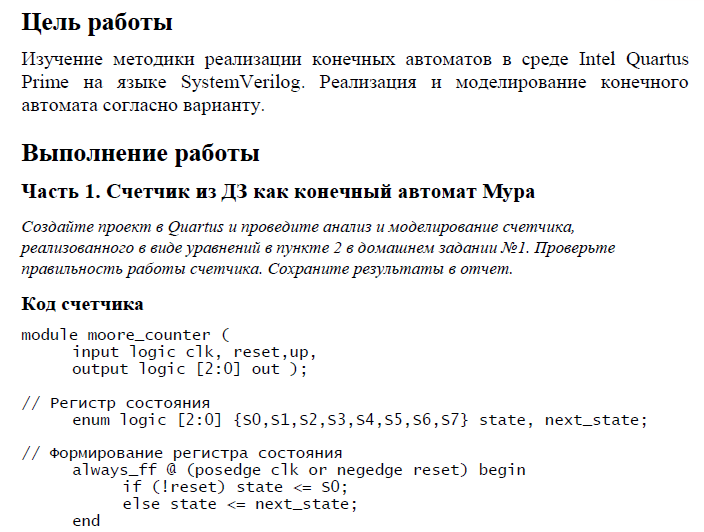 Лабораторная работа: Отчет по лабораторной работе №3 "Проектирование конечных автоматов" (вариант №11)