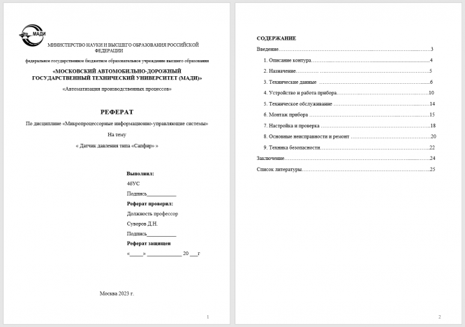 Реферат: На тему: Датчик давления типа «Сапфир»