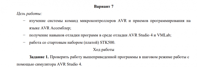 Лабораторная работа: Программирование портов ввода-вывода микроконтроллеров AVR вариант 7