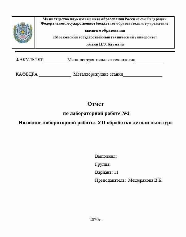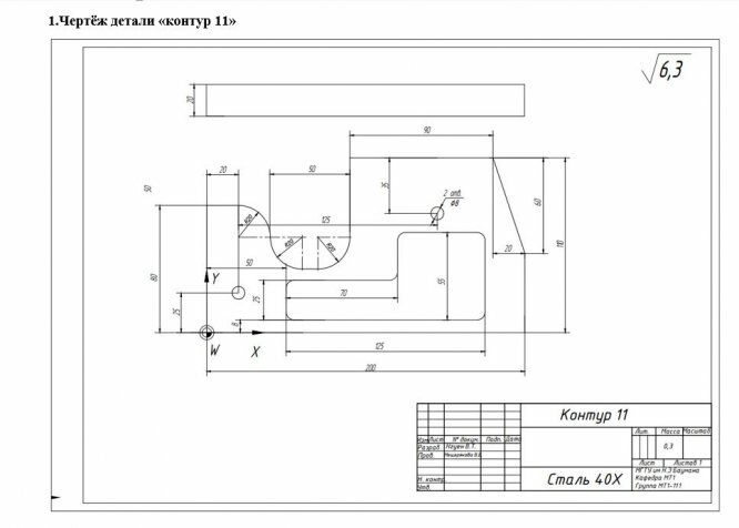 Для студентов МГТУ им. Н.Э.Баумана по предмету Микропроцессорные системы управления станочными комплексамиВариант 11 - ЛР №2 - УП обработки детали «контур» Вариант 11 - ЛР №2 - УП обработки детали «контур»