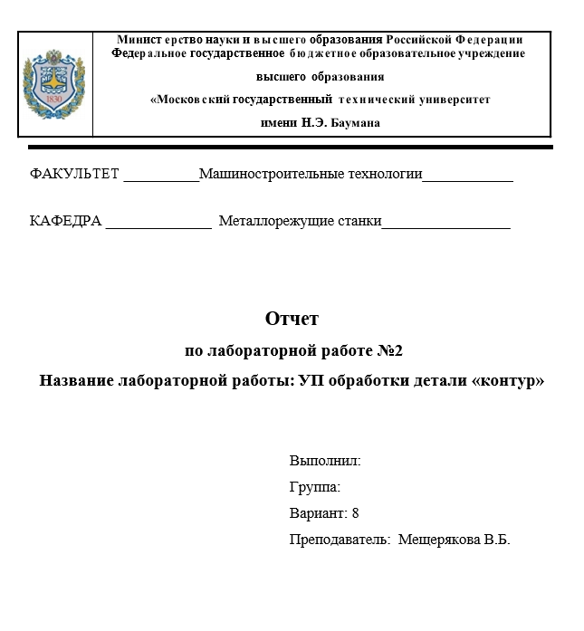 Для студентов МГТУ им. Н.Э.Баумана по предмету Микропроцессорные системы управления станочными комплексамиВариант 8 - Отчет по ЛР №2 - УП обработки детали «контур» Вариант 8 - Отчет по ЛР №2 - УП обработки детали «контур»