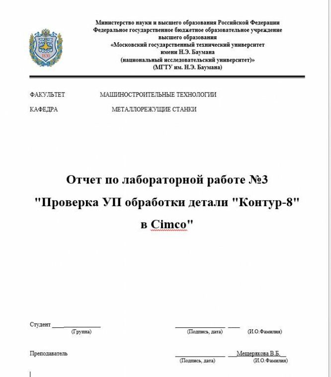 Для студентов МГТУ им. Н.Э.Баумана по предмету Микропроцессорные системы управления станочными комплексамиВариант 8 - ЛР №3 - Проверка УП обработки детали «контур» Вариант 8 - ЛР №3 - Проверка УП обработки детали «контур»