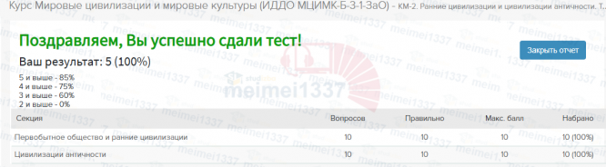 Помощь со сдачей - КМ-2. Ранние цивилизации и цивилизации античности. Тестирование