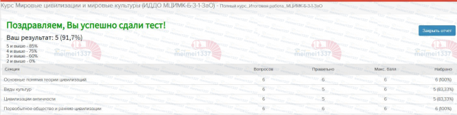 Для студентов ИДДО НИУ «МЭИ» по предмету Мировые цивилизации и мировые культурыПолный курс Итоговая работа - 91.7%Полный курс Итоговая работа - 91.7%