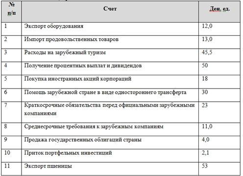 Данные платежного баланса условной страны Паймент: