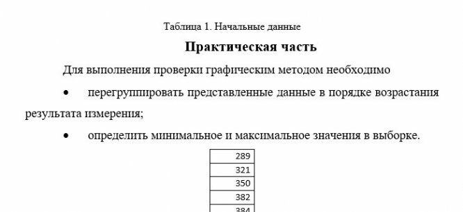 На образце путём многократных измерений получен ряд результатов, представленный в таблице 1. Необходимо проверить соответствие представленной выборки нормальному закону распределения. Проверку производить графическим методом.