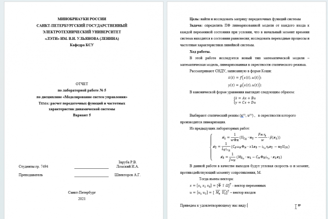 Для студентов СПбГЭТУ им. Ульянова (Ленина) по предмету Моделирование системРасчет передаточных функций и частотных характеристик динамической системыРасчет передаточных функций и частотных характеристик динамической системы
