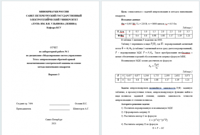 Для студентов СПбГЭТУ им. Ульянова (Ленина) по предмету Моделирование системаппроксимация обратной кривой намагничивания электрической машины на основе метода наименьших квадратоваппроксимация обратной кривой намагничивания электрической машины на основе метода наименьших квадратов