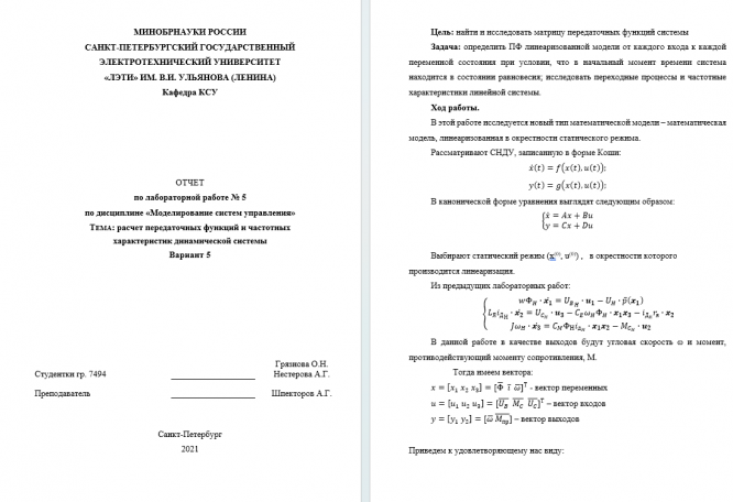 Для студентов СПбГЭТУ им. Ульянова (Ленина) по предмету Моделирование системРасчет передаточных функций и частотных характеристик динамической системыРасчет передаточных функций и частотных характеристик динамической системы