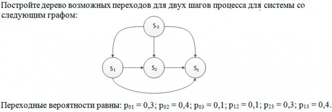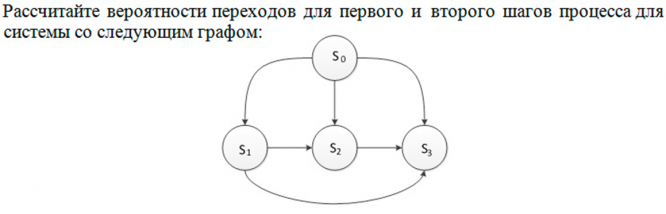 Пусть Марковский процесс с дискретным временем и начальным состоянием S0 совершает следующие переходы: