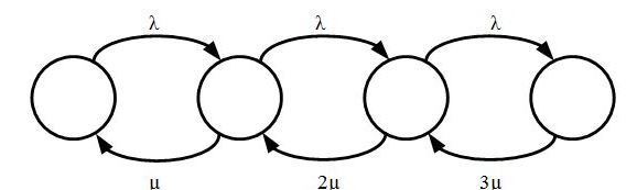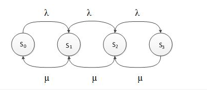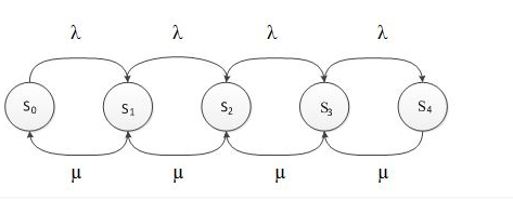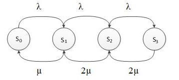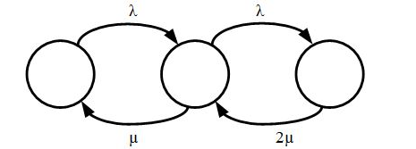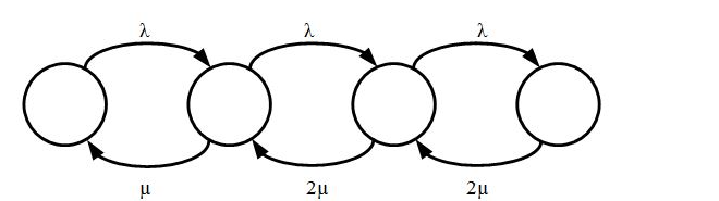 Будет ли работать СМО со следующим графом переходов, если λ = 2 1/с, μ = 1 1/с.
