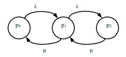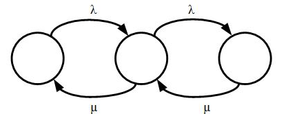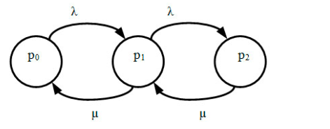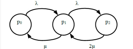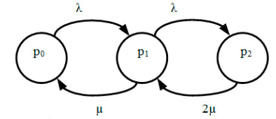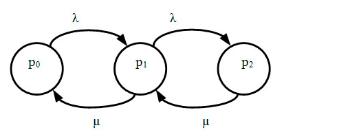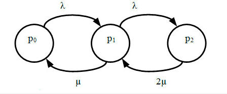 Запишите систему уравнений Колмогорова и определите среднее число заявок Мср, обслуживаемых в СМО со следующим графом, если Л =1. 1/с; ц = 2. 1/с.