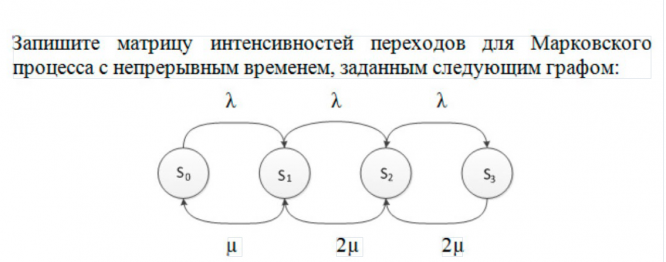 15 Запишите систему уравнений Колмогорова и определите пропускную способность А СМО со следующим графом, если Л = 11/с; ц = 2 1/с.