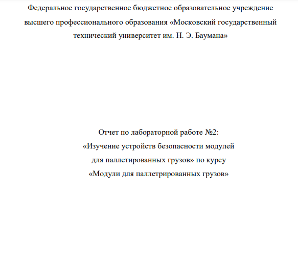 Для студентов МГТУ им. Н.Э.Баумана по предмету Модули для паллетированных грузовЛабораторная работа №2Лабораторная работа №2