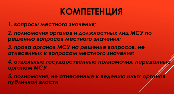 Лекции: КОМПЕТЕНЦИЯ МУНИЦИПАЛЬНЫХ ОБРАЗОВАНИЙ